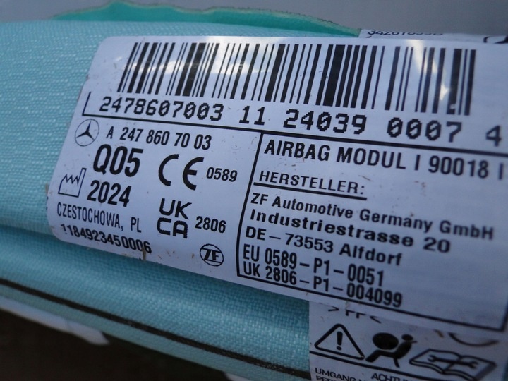 MERCEDES KURTYNA POWIETRZNA PRAWA AIRBAG A2478607003 GLA 247 H247 USA LIFT