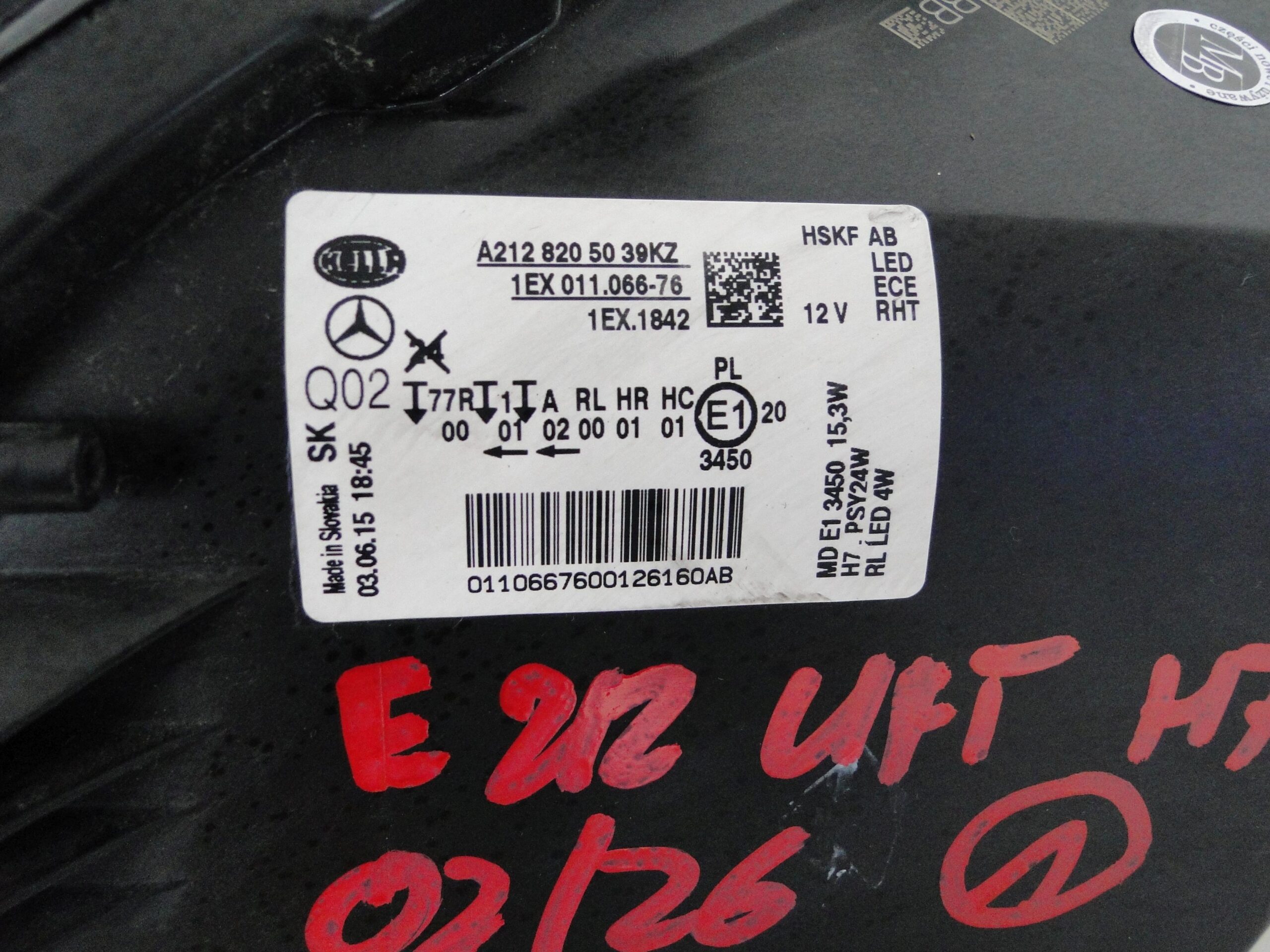 MERCEDES LAMPA PRZEDNIA PRAWA LED EUROPEJSKA E KLASA 212 W212 S212 LIFT